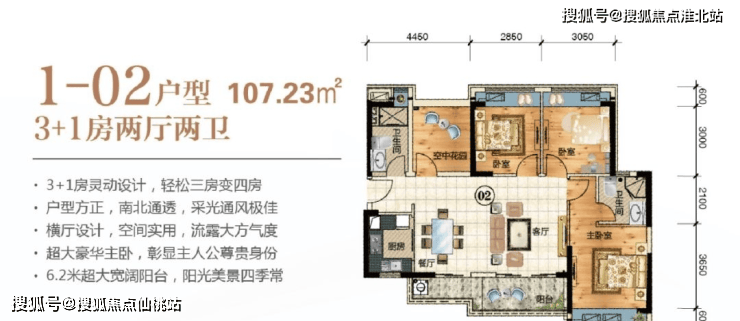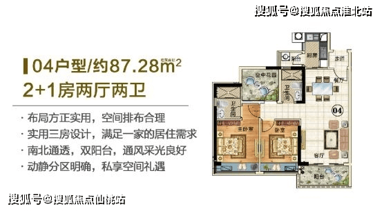百变户型,户型囊括约 87/89㎡三房两厅两卫,107/120㎡四房两厅两卫 ,新东方现代艺术设计,纯南向布局,通透采光,灵动实用。