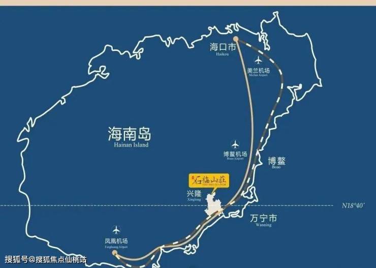 3大机场:海口美兰机场(约140公里) 、三亚凤凰机场(约98公里) ,琼海博鳌机场(约54公里)