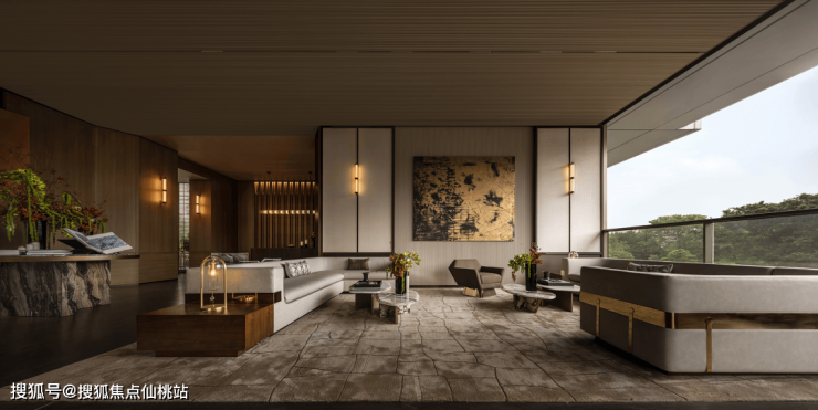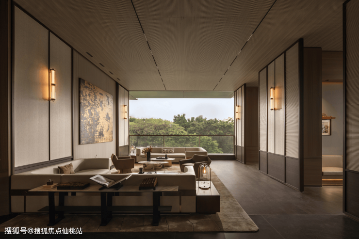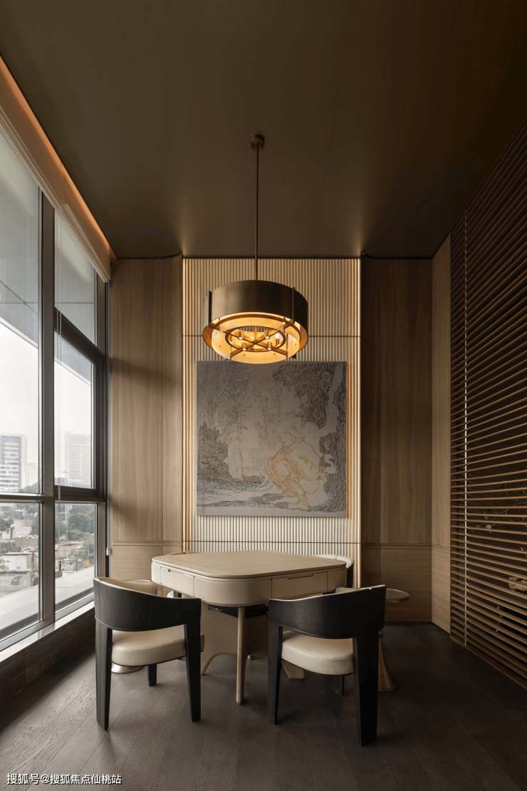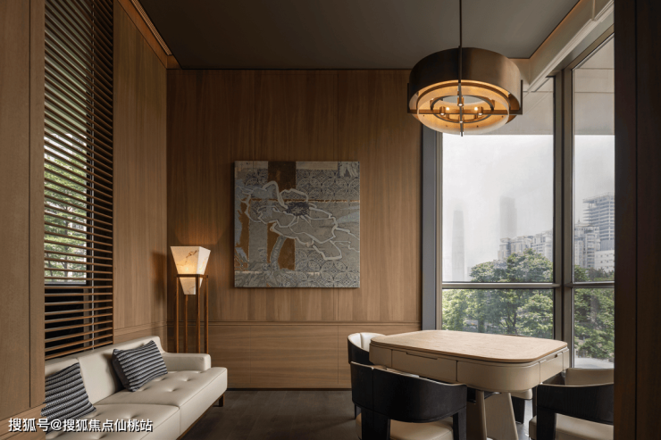 休闲区的窗口更是完全打通,尽可能将空间打开,落地窗的设计让室内布局与室外的景观相互渗透,最大限度地引进花城的光影与四季变幻。