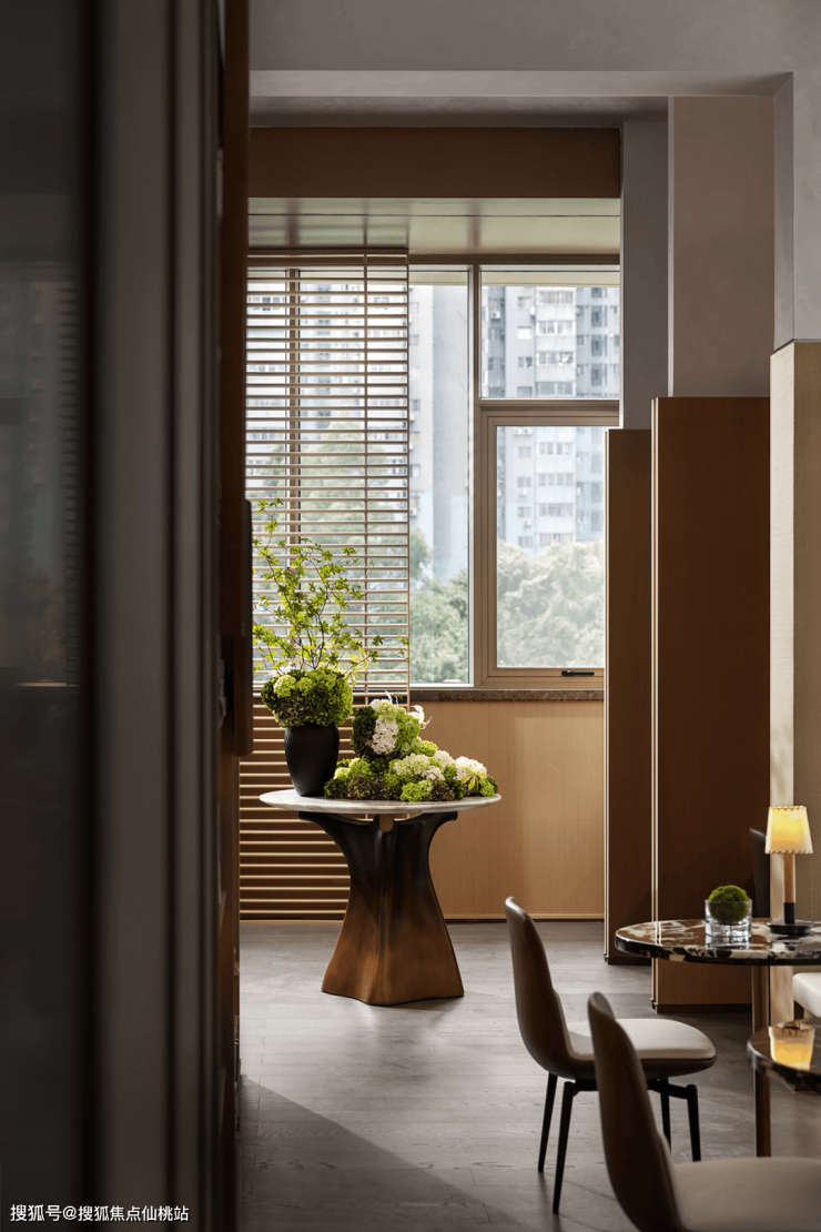 通过绿植花艺以及空间造景,让细微之处皆有景致,空间秩序生趣盎然。游走其中,更有探索的意趣。