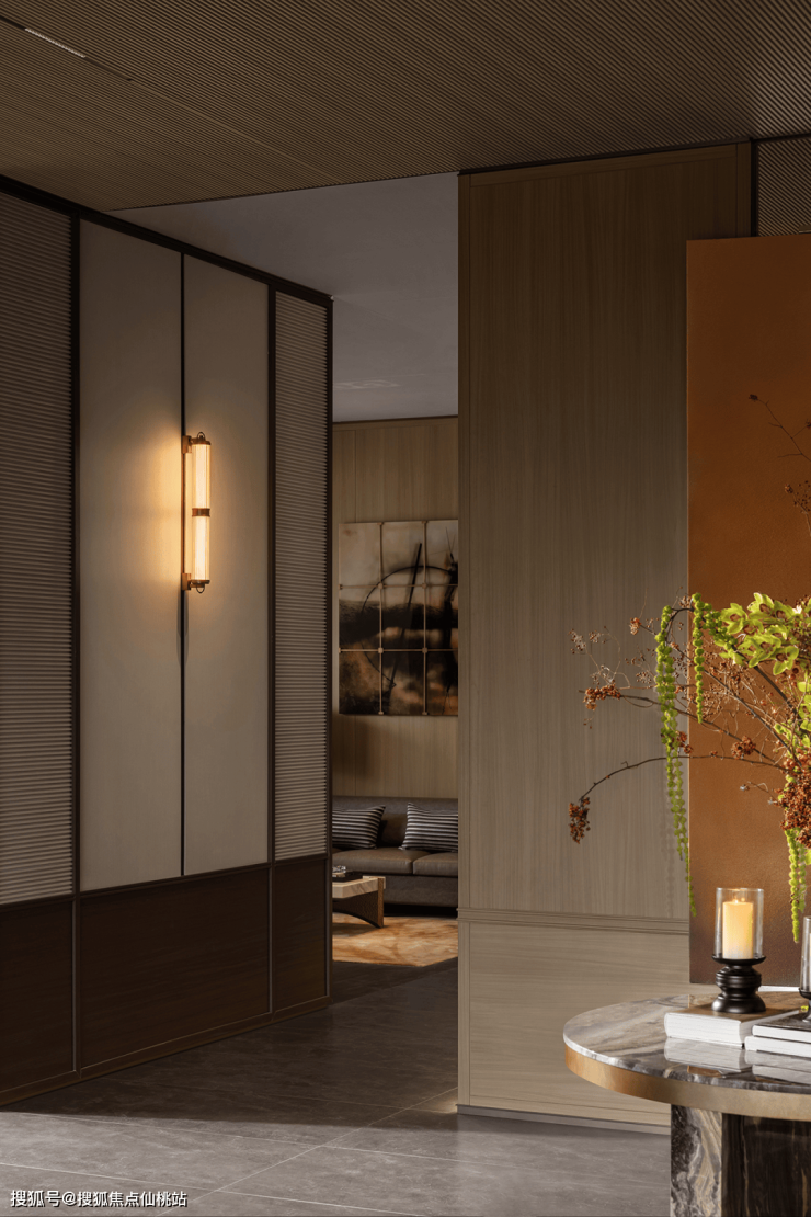 空间布局保持简约逻辑,将含蓄的优雅隐在光线,材质以及比例中,从而构建出一个宁静、内敛、富有层次感的场域。