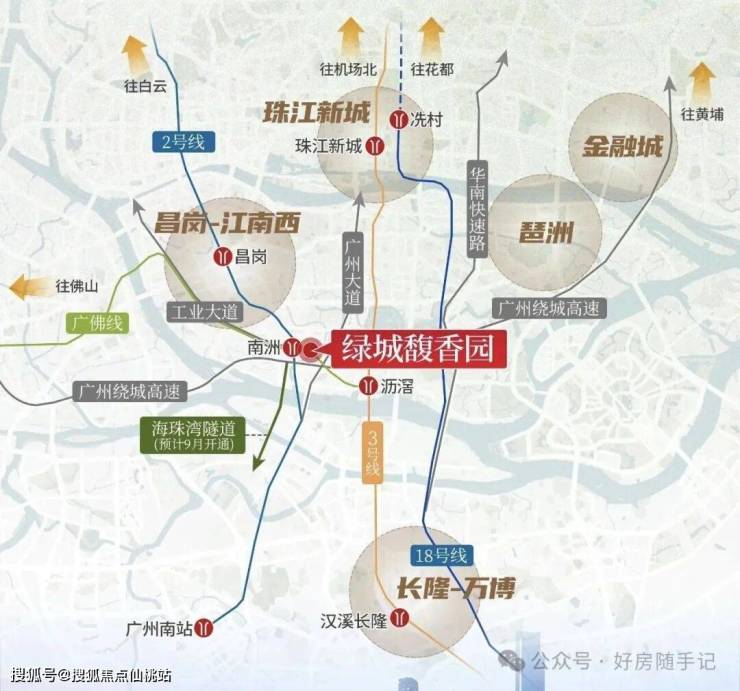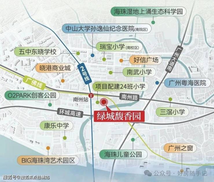 绿城馥香园的交通配置形成了显著竞争力,项目紧邻地铁2号线与广佛线交汇的南洲站,直线距离仅100米,步行几分钟即可抵达,这种“地铁口物业”的属性在广州核心区尤为稀缺。