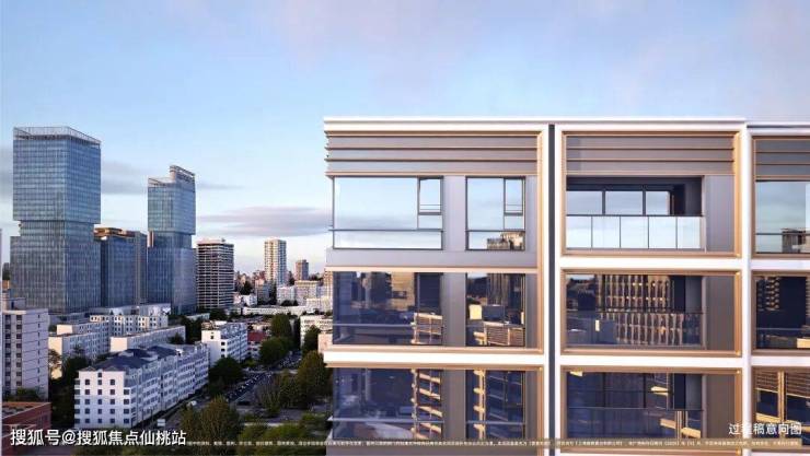 项目基底采用质感厚重的石材,上层第一界面则以全铝板+玻璃幕墙为主,更突破性地实现了“四面平权”设计——不同于多数楼盘只注重南面美观,侧面与北面简化处理的做法,保利誉滨江无论从正面、侧面还是背面观察,立面都保持精致统一的视觉效果。