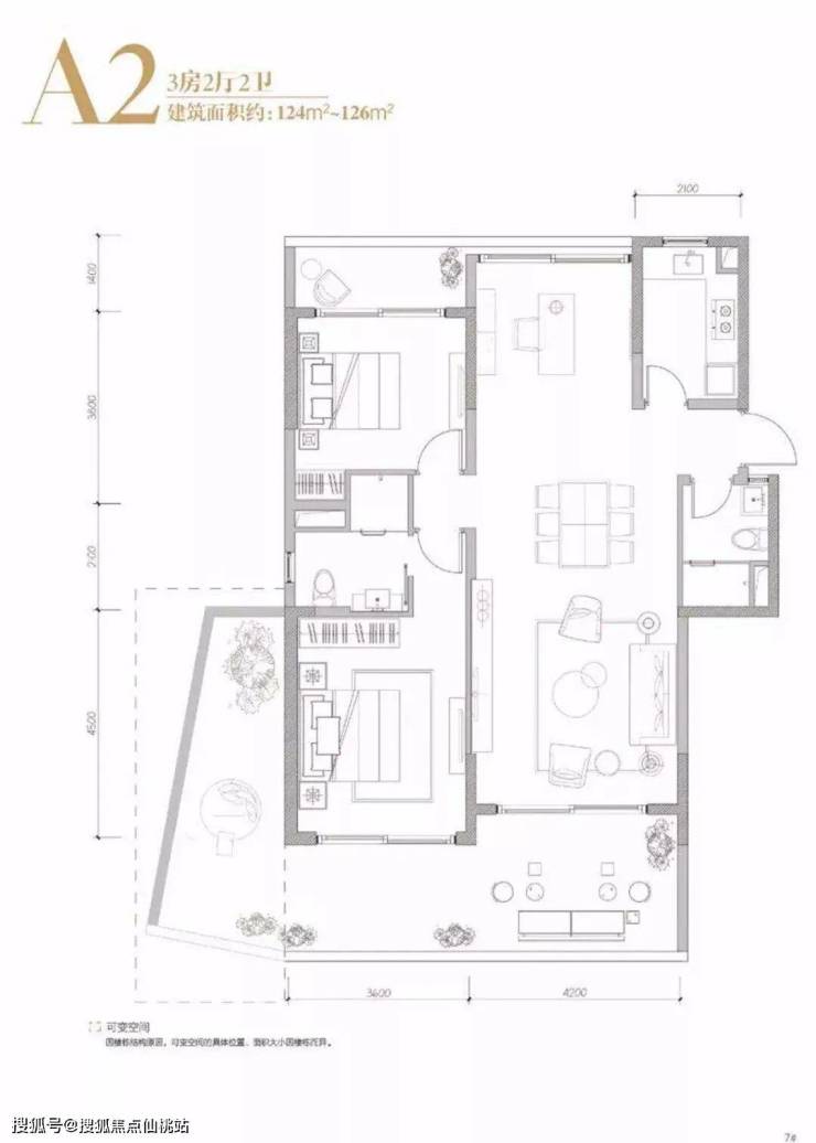 建筑面积:约125㎡ 三房两厅两卫