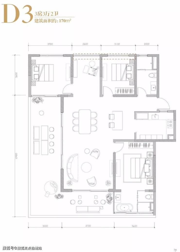 户型建面:96-170平,二房至四房
