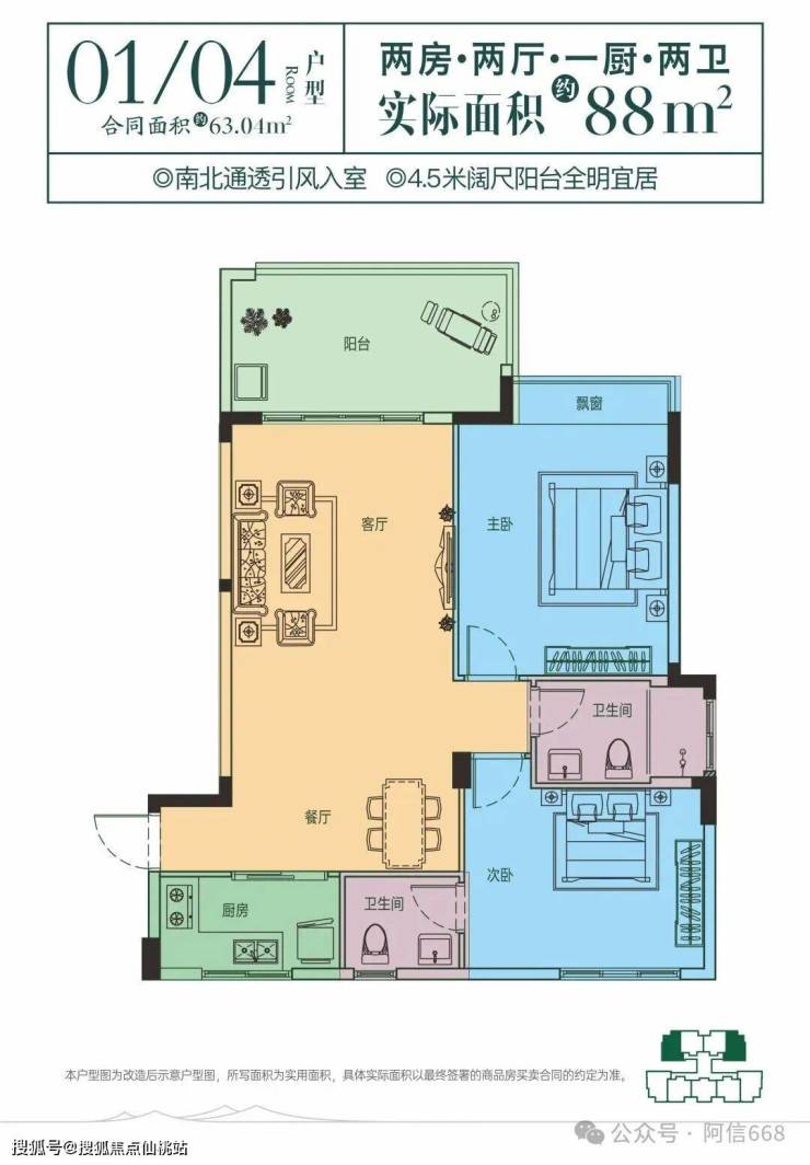 5、建筑面积63平米,使用面积88平米