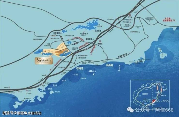 项目位于海南万宁兴梅大道靠近石梅湾的位置,距离石梅湾海边三公里左右,不近海也不远海,项目在半山环绕之中,相比周边的地势也是比较高