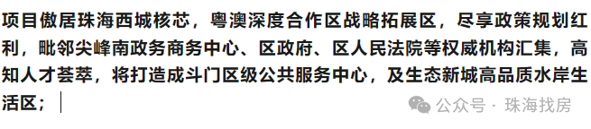 ②大信·新都汇、建粤商务中心、富元广场、斗门珠峰科创中心等配套集聚;