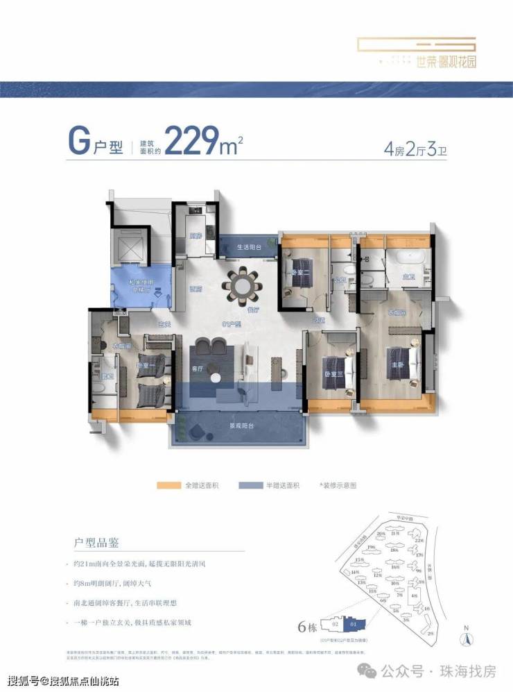建筑面积约104-229㎡3-4房美学平层,着落其间