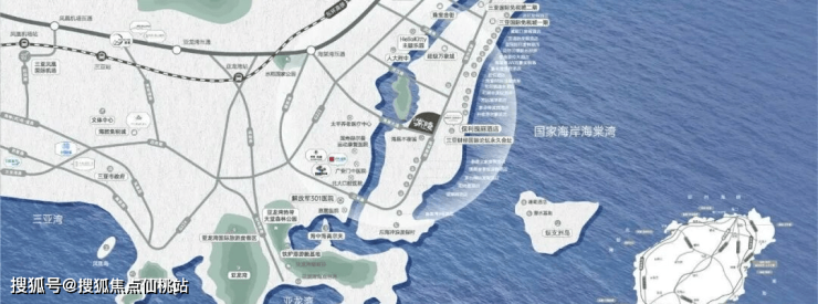 海棠湾核心地段,临海面河,玉带缠腰,河海汇聚呈“敛财”之势,背靠中国30000公里海岸线上最高的地标建筑保利瑰丽酒店,远侧是连绵起伏的环山,藏风聚气,得水为上,上风上水的绝佳风水宝地;