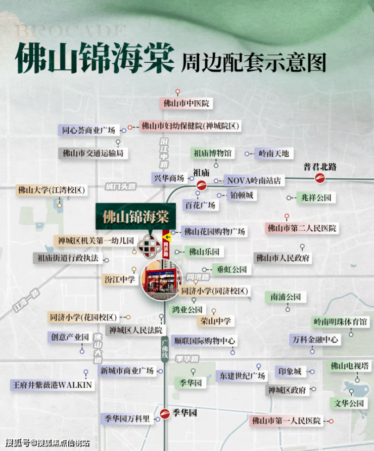 佛山绿城锦海棠的爆火,首先赢在“地段基因”。项目落子祖庙核心区,这里是佛山千年文脉与现代商业的交汇点。步行范围内,岭南天地、祖庙商圈、广佛线同济路地铁站构成“黄金三角”,地铁4站直达桂城,7站直抵千灯湖CBD,自驾通过汾江中路可快速串联佛山各区。