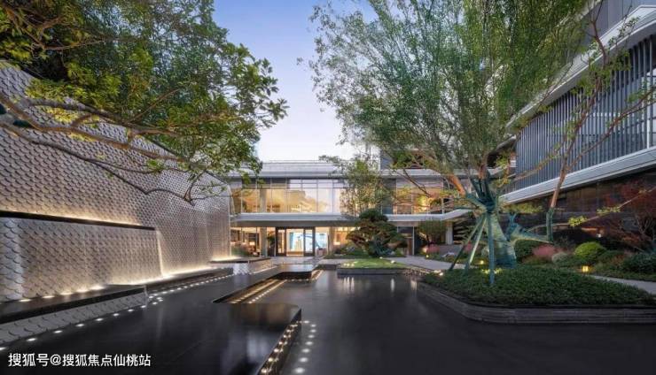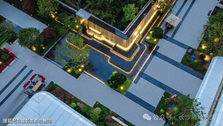 超阔美学园林:打造私密、雅致的园林景观,后场园林打造约40米长的龙鳞跌水瀑布,苗木选用符合湖南气候条件的全球名贵树种并全冠移植,构筑归家礼序与生活美学的悠然画卷。