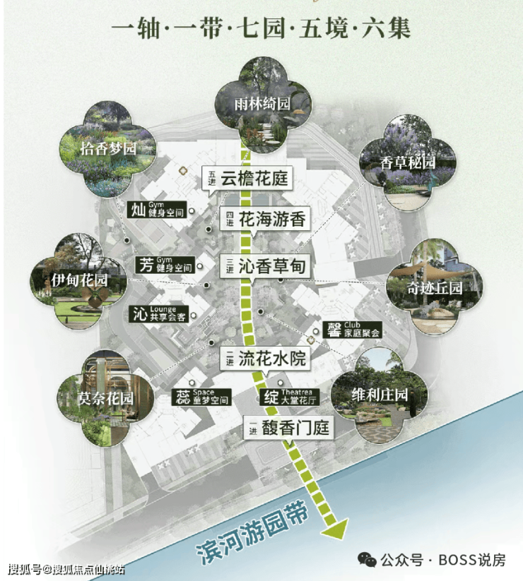 园区内设有六大社区花园及中式园林景观,还规划有儿童乐园、老年活动中心、环形跑道、社区会客厅等全龄化社区设施