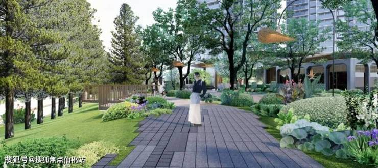 项目内部计划打造六大社区花园,并优化南侧水道,形成一线河景与双公园相结合的景观效果,还汲取了十香园的灵感,打造了一个街角公园,并保护了百年榕树,增添了广式生活情调。