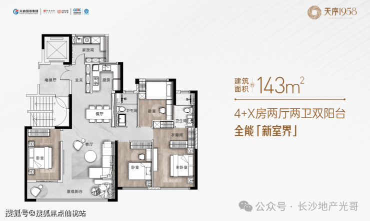 143㎡全能户型(4+X 房):刚需改善过渡首选