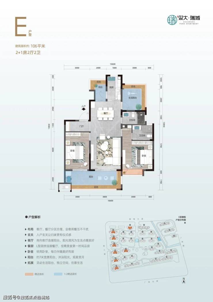 E户型:106㎡(2+1房)竖厅