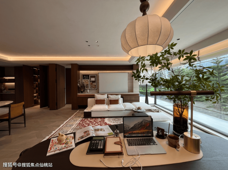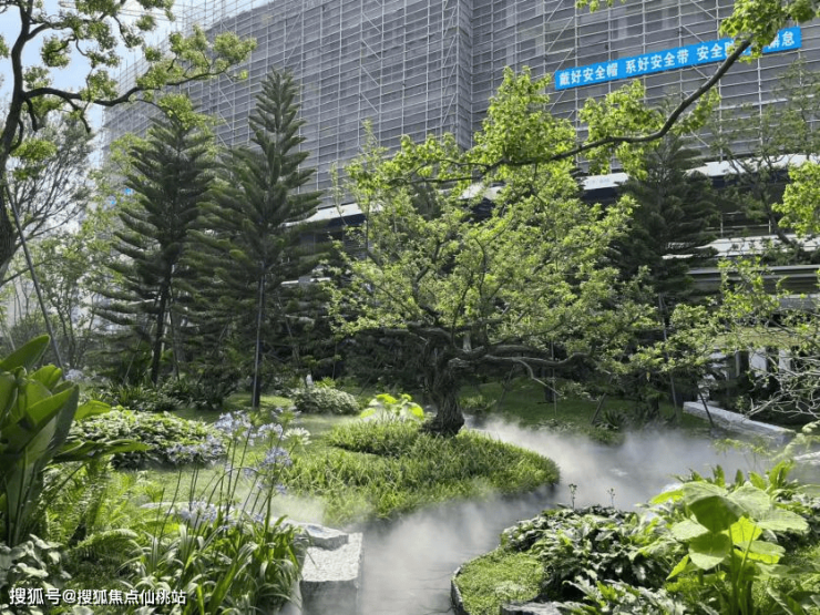 金莎蔓与姬岩垂草铺就精致地景,百年古杉与南洋杉营造立体景观......约430㎡镜面水庭倒映九重意境,云山、溪谷等主题景观步移景异,展现柳州独特的山水韵味。