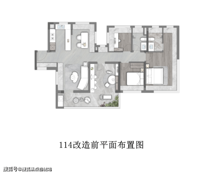 建面约114平户型为竖厅设计,能媲美旧规140平大平层的体验,拥有超7米跑道级南向阳台。