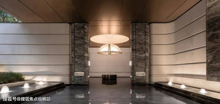 走进大门,直接被震撼!超81米长、5.5米高的礼序大门,两侧仪仗景墙采用白玉兰奢石、中间镶嵌的是施华洛水晶玉石,归家气场全开。
