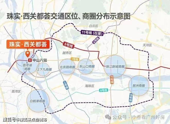 项目距离地铁5号线直线仅约500米,周边还汇聚5+11号线和34条公交线路,5号线可直达珠江新城、金融城。11号线作为内部大环线,能一线直达火车站、广州东站、琶洲、白鹅潭、广船等重要板块。