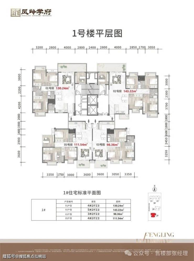 【户型】2T4户,95㎡、108㎡、111㎡、130㎡、143㎡