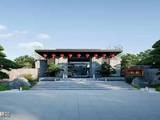 社区入口设计融合海洋元素的流体美学与几何美学,采用八根花柱造型;柱跨间为南洋风格艺术拼花彩玻,搭配奢石装饰门套、VI纹饰把手等细节,形成“八柱六门”入口空间;入口大门尺寸为12米高、90米宽。