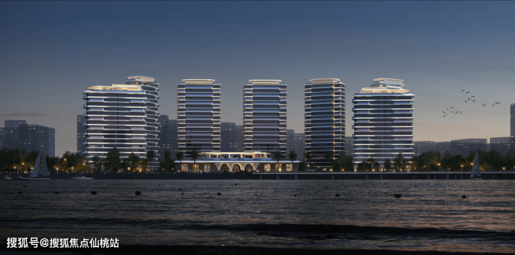 采用轻盈独特的滨水风格和海洋文化流体美学进行立面设计。以天空游轮为灵感,流畅的弧线设计立面采用幕墙设计+曲面玻璃,体现自由浪漫的滨海气息。