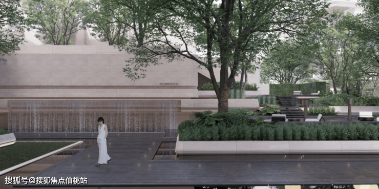 景观设计以“藏海补山,中正平和”为设计愿景,融入厦门在地文化菽庄花园,打造立体游园式空间体验。功能分为60米屋顶无边泳池、中央水轴、无风雨归家廊道、呼吸感的台地花园、主题花园、儿童活动场地、水系归家7大功能模块以及浮城云抵、逐水观澜、溪山瀑境、寻画游廊等十大生活场景。