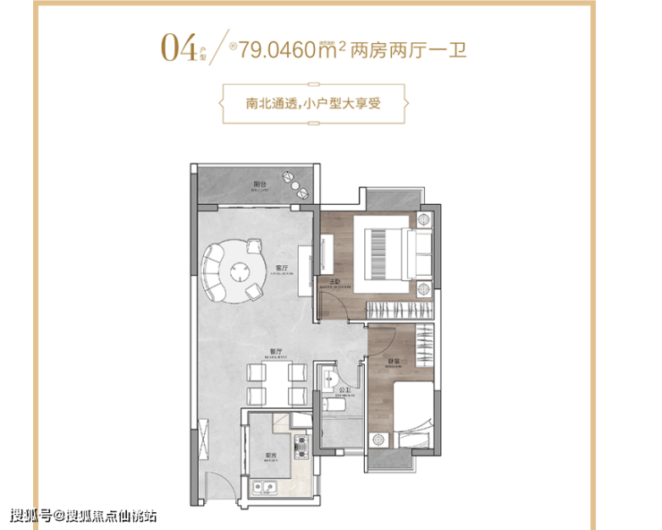 79㎡的 2 室 1 厅是刚需热门,总价大概 300 万元,得房率能到 82%,主卧带 270° 转角飘窗,采光不错,南向的朝向也让房间冬天更暖和,客厅和卧室的空间分配比较均衡,不会显得局促。