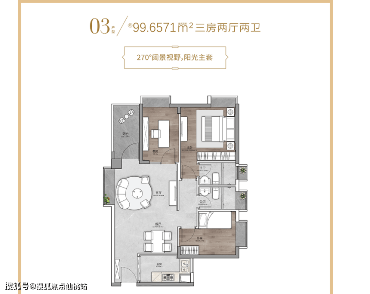 99㎡的 3 室 2 厅总价 368 万元左右,比 90㎡的多了个储物间,餐客厅连在一起更显通透,主卧带独立衣柜区,收纳空间更充足,适合家里东西比较多的家庭。