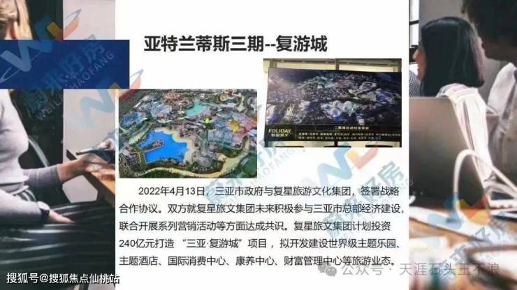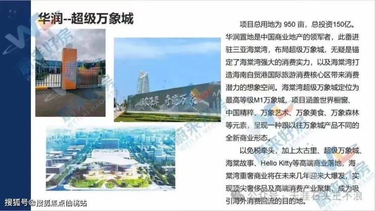🏖海洋欢乐世界(国家4A级景区,占地约2000亩)、凯悦酒店、黎安海归小镇、免税购物城(规划中)、体育竞猜中心(规划中)等