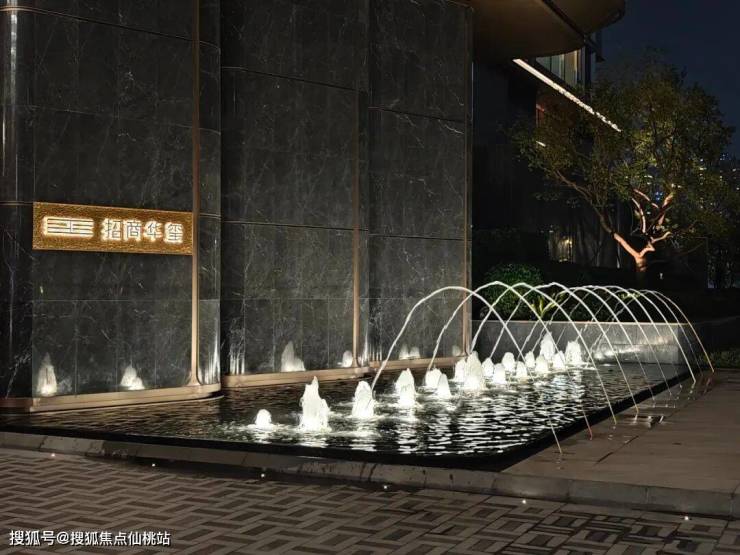 更关键的是其“可进入的艺术感”。业主无需远观,而是从容步入这座私享殿堂 ,实现从城市喧嚣到私密领域的情绪过渡。步入社区,映入眼帘是整面震撼的水幕墙与聚宝盆造型屋顶,既是自然与城市的结合,也有招财进宝的寓意。