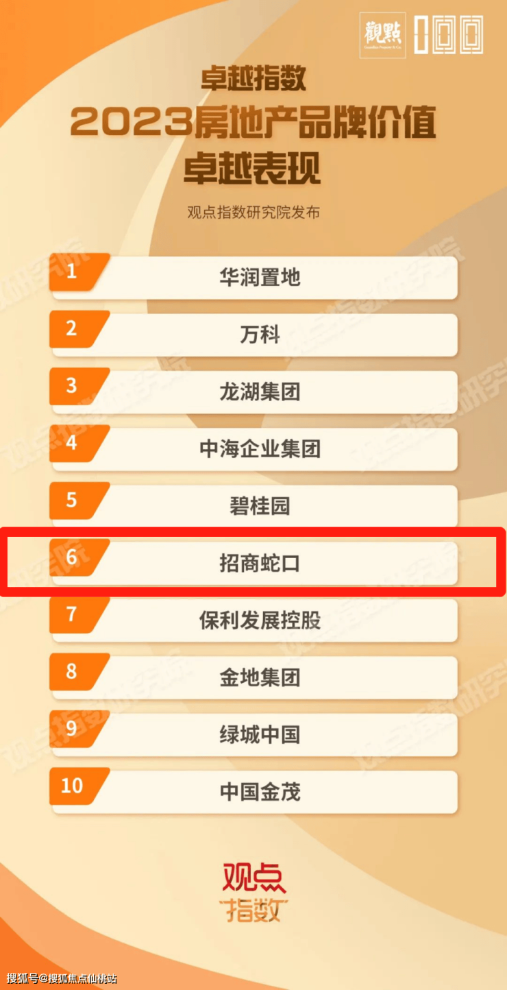 3月22日,“卓越指数·2023房地产年度卓越表现”研究成果由观点机构重磅发布,招商蛇口凭借优秀的综合实力和细分领域的卓越表现,斩获“2023房地产企业品牌价值卓越表现”“2023房地产商业模式卓越表现”等多项大奖。