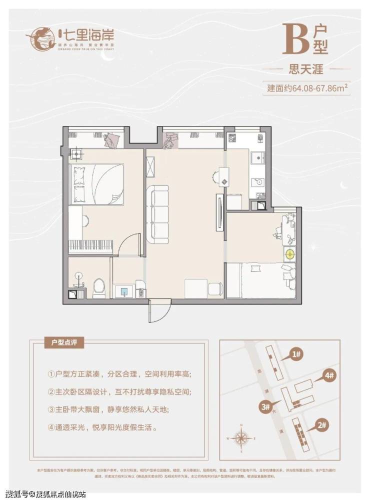 🏠2.思天涯B户型两房一厅一卫 | 建面约64.08-67.86㎡