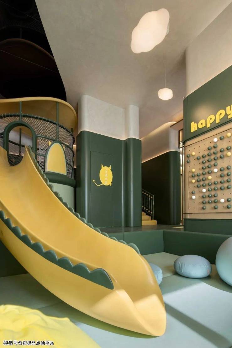 滑梯以玻璃钢打造,形似山峦起伏;地面铺设鹅卵石纹软胶,孩童奔跑如踏溪石。墙面装置如对弈趣味互动,传统IP焕发童趣生机。天花上云朵漂浮,启发孩子们的无限创想。光影交织成流动的童趣,寓教于乐,尽显东方美学启蒙。