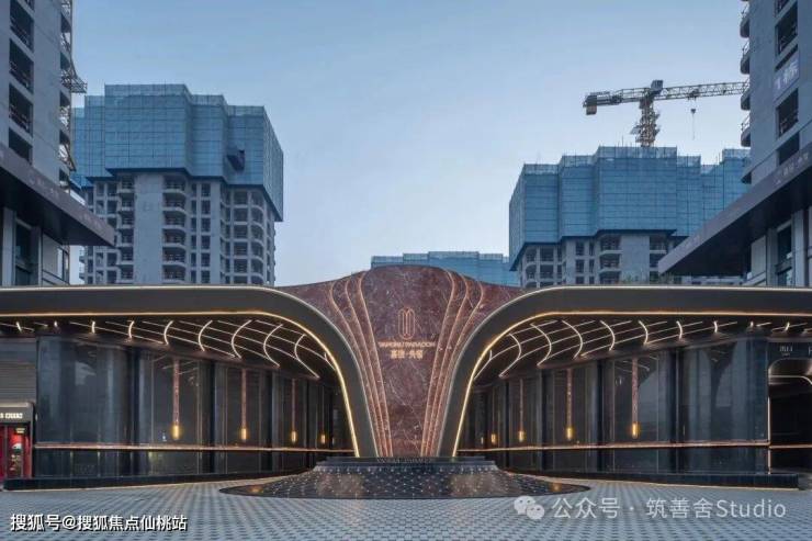 小区大门比较有特点,宽达65米,高耸9.25米,门庭之奢阔,尽显不凡气度。其设计独具匠心,正面观之,恰似一个“央”字,令人称奇。正中央,以西班牙珊瑚红奢石精心雕琢的“皇冠”形态,巧妙呼应“玺”字所蕴含的帝王印信之尊贵。更以金属线条将我们的宝石LOGO镶嵌于皇冠之上,使平面的奢石焕发出立体之韵,尽显匠心独运。