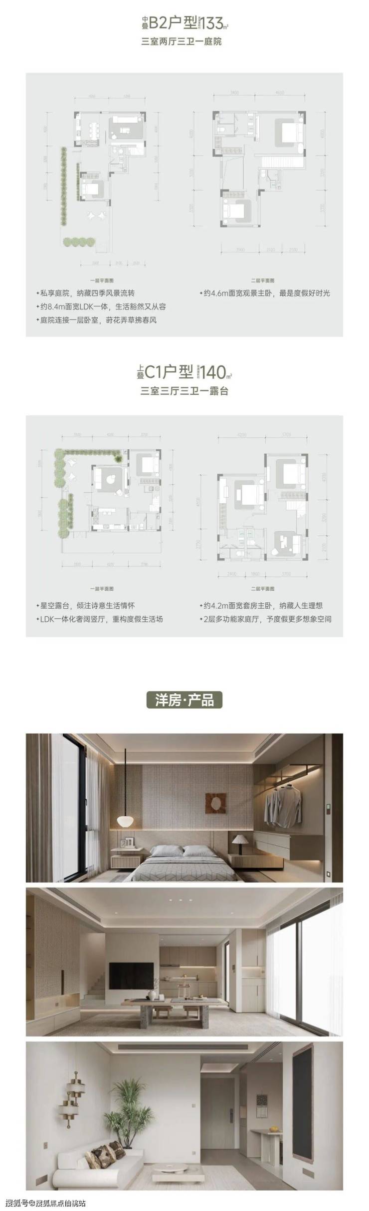 🏡 中叠面积130㎡:3房3卫 196 万起