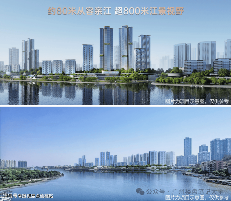 江面最宽达800米:项目私享约1000米的阔绰江岸线,约800米巨幕江面(远超侨鑫汇悦台江面400米,天誉半岛320米左右)。