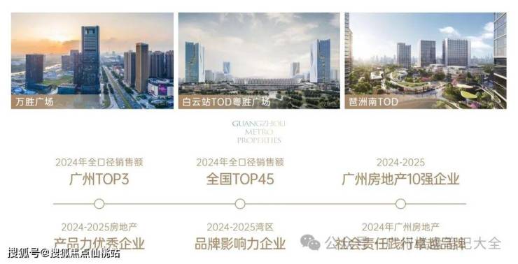 广州地铁地产:30余载TOD开发经验,自1993年起布局“轨道+物业+产业+生活”,累计开发超1000万㎡,打造琶洲南TOD、白云站TOD等20余个标杆项目,2024年销售额广州前三,“上城系”“胜系”产品线成熟度行业领先。