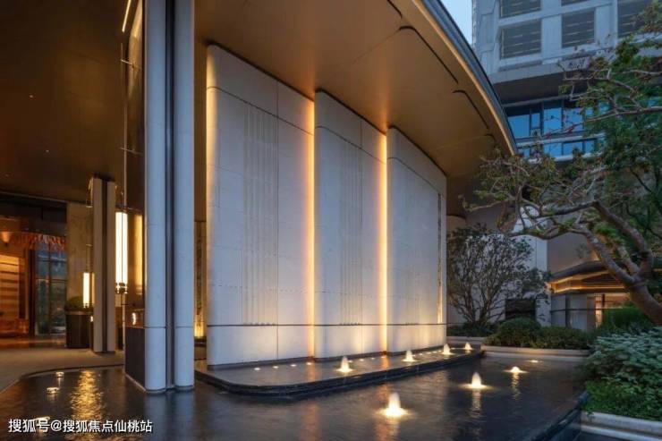 临街景观以碗状景墙层层包裹,围合出阶梯式花园,在繁华的闹市街角开辟一方私享社交花园。伴随着静水叠级、盎然绿意,让日常归家成为一场身心沉浸的优雅体验。