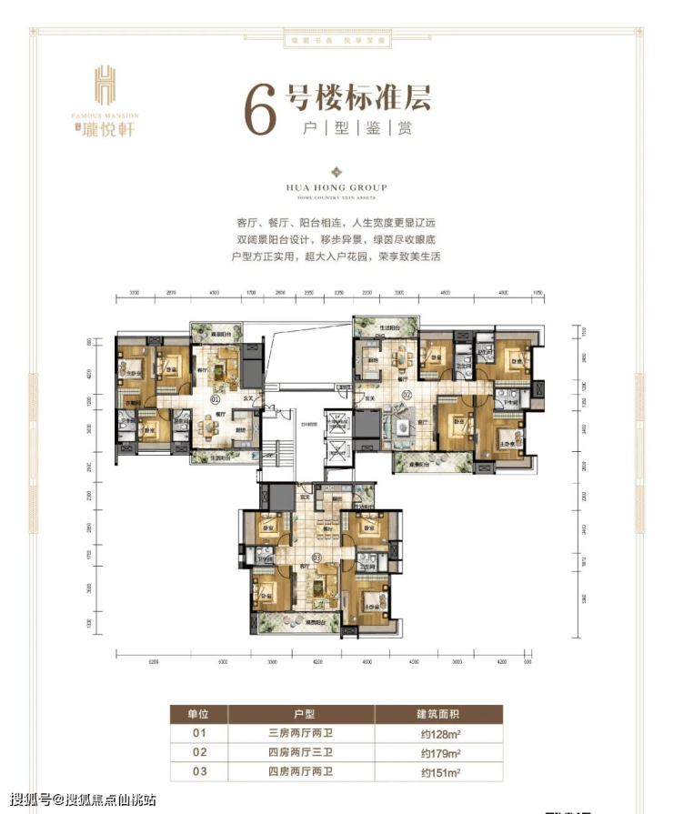 9栋两梯三户:140平3+1房,152平、177平四房