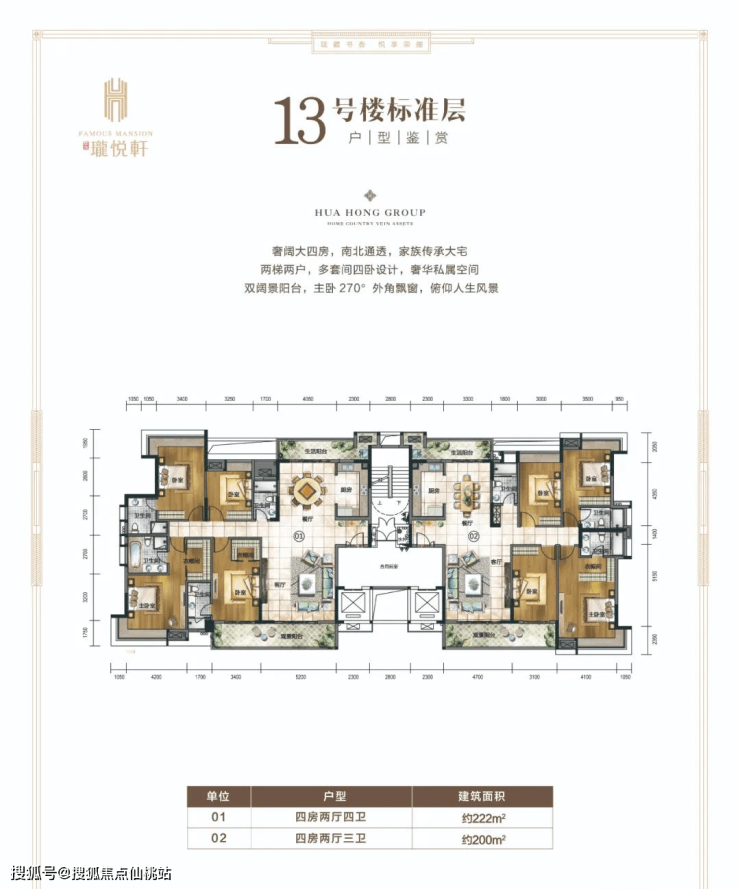 13栋两梯二户:200平、222平四房