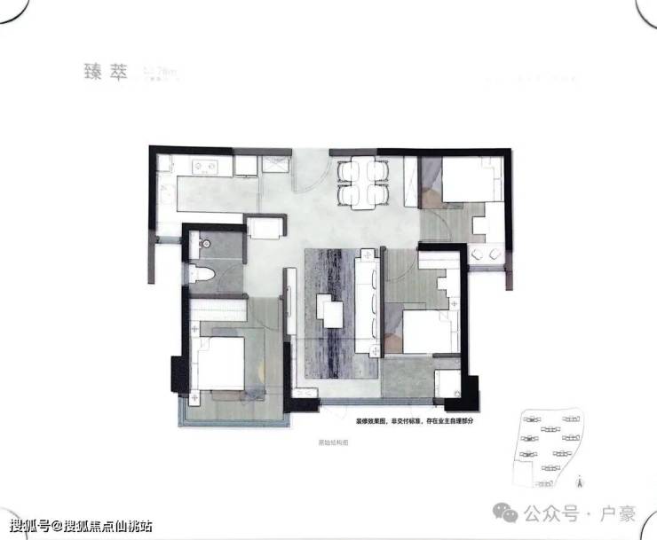 4.户型设计与布局 •78㎡三房两厅一卫;