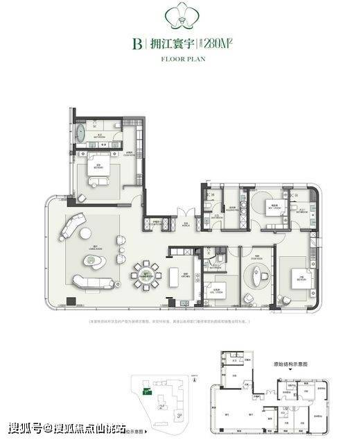 户型设计体现对高端生活方式的深度理解。项目全盘为建面约213㎡~280㎡奢阔大平层,采用2梯2户纯板楼布局。