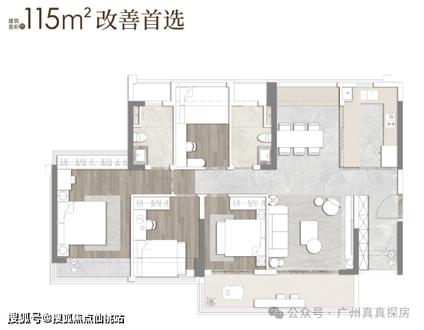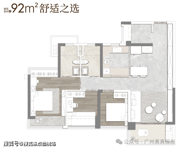 2:所有户型都是新规后的户型,得房率超100%,约90㎡做到全南向、带主套,舒适度蛮ok。