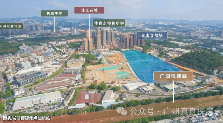 东侧是岐山路,南侧是广园快速路和富颐华庭,北侧则是天河网红盘珠江花城。而周边的吉山村旧改,配置有商业、教育、公园等功能地块,未来全面焕新后,想象空间很大。