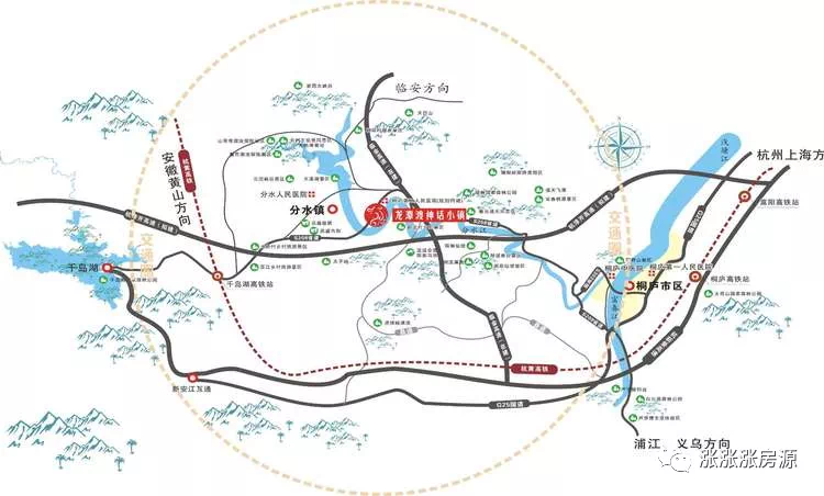高速:正在修建的临金高速和杭淳开高速出口距离我们项目约3.5公里,明年即将开通,形成杭州经济圈。