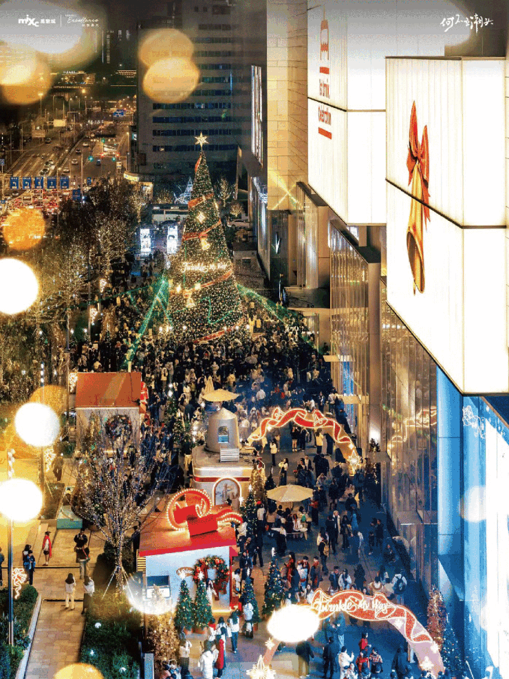 16米高的圣诞树与人造飘雪秀营造的节日氛围,吸引全城客流。