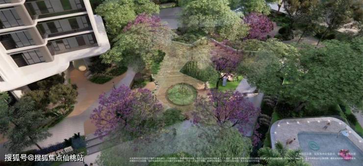 项目以“自然定奢华”为理念,倾力打造约1.6万㎡超级中庭园林。园林内融合约1000㎡立体水系,包括成人泳池、儿童戏水池与灵动叠级水景,搭配紫花风铃木等热带花木,营造出沉浸式的度假生活场景。在这里,度假不再是远行的特权,而是归家即享的日常。
