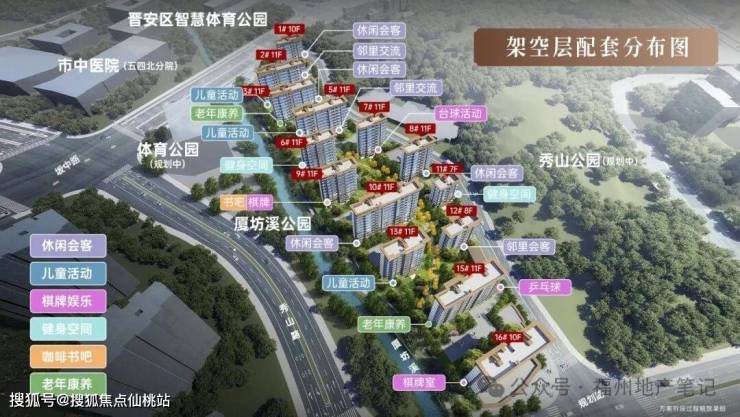 楼盘规划上,每栋楼都有架空层配套,书吧、棋牌室、儿童空间、运动空间等比较齐全。